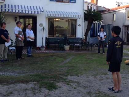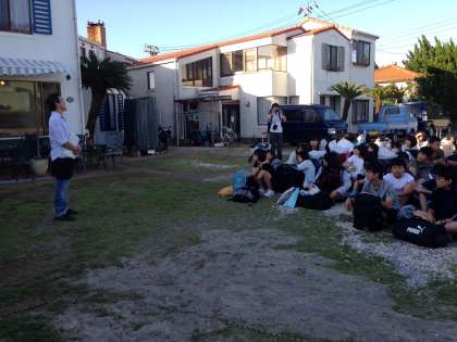 修学旅行1日目 その5 公開日 2016/05/12 更新日 2016/05/12 3年修学旅行 全員無事,ペンションに到着しました。入村式を行い、男女別にペンション シーガル、ペンション サンデービーチに入りました。本部のペンションは、ペンションKEIKOです。昼間の好天のおかげで、夕方は爽やかな涼しい風が吹いています。 ちなみに地引き網ではクロダイ・カマス・トラフグ・ハコフグ・カタクチイワシなどが捕れたそうです。