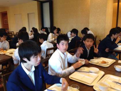 修学旅行3日目 その1 公開日 2016/05/14 更新日 2016/05/14 3年修学旅行 おはようございます。ついに3日目の朝を迎えました。今日も快晴です。バイキングの朝食を全員元気ににモリモリ食べています。この後,墨田区内伝統文化体験場所へ移動します。