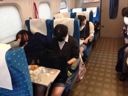 修学旅行3日目 その7 公開日 2016/05/14 更新日 2016/05/14 3年修学旅行 予定通り16:17京都着の予定です。そこから地下鉄で学校に戻ります。よく歩いたおかげで、疲れて寝ている人の多い車内です。