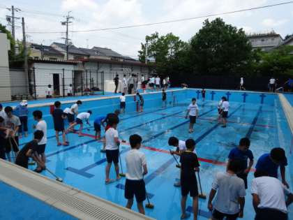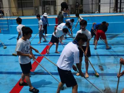 プール清掃が行われました。 公開日 2016/05/31 更新日 2016/05/31 学校の様子 本日で定期テストも終わり,昼からプール清掃が行われました。とても暑かったのですが,生徒たちは本当によく頑張ってくれました。PTAの方から,お茶の差し入れもしていただき,とてもありがたかったです。ありがとうございました。 野球部,男子バスケット部,サッカー部の皆さん,お疲れ様でした。
