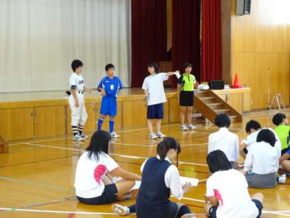 生徒会集会 公開日 2016/07/07 更新日 2016/07/07 生徒会 本日5時間目,生徒会の主催による生徒集会が体育館で行われました。 校歌をしっかりと大きな声で歌い,その後は「神様ゲーム」「伝言ゲーム」が行われて,小規模校ならではの学年を超えたチームで楽しむことができました。