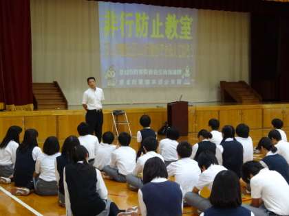非行防止教室 公開日 2016/07/08 更新日 2016/07/08 学校の様子 本日,京都市教育委員会生徒指導課より晝川担当課長に来校していただき,非行防止教室を行いました。PTA第2回家庭教育学級も兼ねています。 暑い中,生徒たちは心剣に晝川担当課長の話に聞き入っていました。誠の道を外れることなく,青春を謳歌してほしいと心から願います。