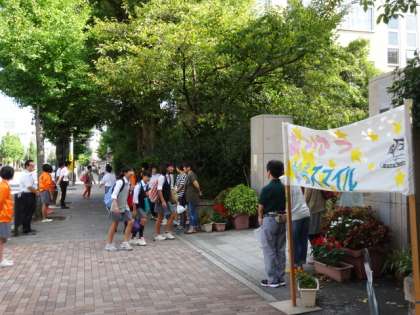 朝のあいさつ運動 公開日 2016/09/08 更新日 2016/09/08 生徒会 9月1日から7日まで「朝のあいさつ運動」が行われました。 まだまだ厳しい暑さが残っていますが,生徒たちは元気です。PTAの方も一緒に「おはようございます」とさわやかな声が烏丸通りに響いていました。