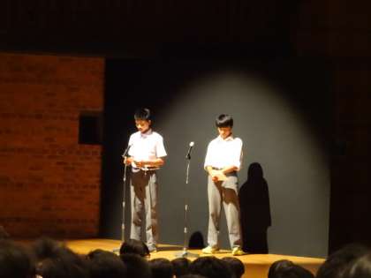 午前中はリーダー講習会の発表、1年生発表「京都御所について」3年生学年劇「もしもわらしべ長者が赤ずきんだったら」午後からは団体鑑賞(同志社大学)・職員発表また、学校では昼食時間に選書会やPTAのミニ茶席体験が行われ、今日も盛りだくさんの内容でした。