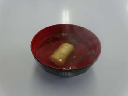 生徒たちは,取り立ての「だし」でユバとネギのお吸い物をいただきました。