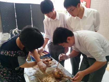 修学旅行 28 公開日 2017/05/12 更新日 2017/05/12 3年修学旅行 5月12日(金) 修学旅行3日目 墨田区伝統工芸品製作体験 このグループは鶴首花瓶の蒔絵体験です。なかなかのできです。集中力とデザインの想像力を褒めてもらったようです。