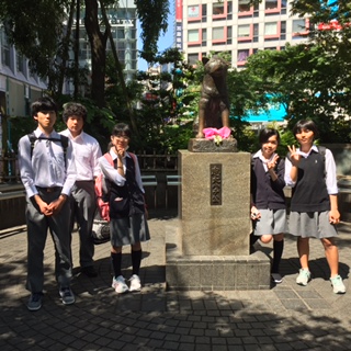 ハチ公と一緒に記念写真「ハイ、ポーズ」
