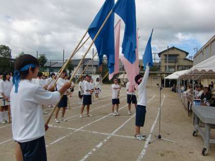 入場行進に始まり,選手宣誓,ラジオ体操第1,競技とラジオ体操は少し迫力に欠けましたが,徒競争などの個人種目,学級別や色別(縦割り)リレー,学年競技,PTA競技などスムーズに進行し,子どもたちの精一杯の姿に感動と新たな発見と多くのエネルギーをもらいました。
