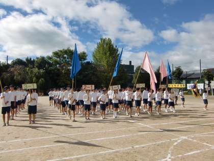 体育祭は文化祭との入れ替わりで,9月28日に行いました。前日の多雨にもかかわらず,早朝よりグランドの水取りやライン引きなど,生徒と教職員が協力し何とか開催にこぎつけました。ただし,保護者席や来賓席・本部席の下はぐちゃぐちゃで,来賓並びに保護者の皆様方にはご迷惑をおかけしました。