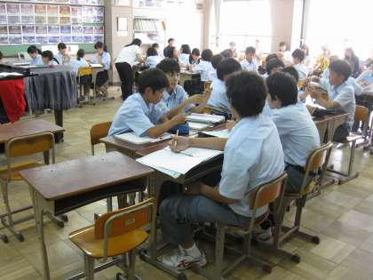 本日、北・上京区の中学校では支部の授業研修会が行われました。上京中学校では、音楽の研究授業がおこなわれ、1年3組の音楽の授業を他校の多くの音楽の先生方が参観し、その後の研究協議でよりよい音楽の授業を求めて意見交換し、研修を深めました。