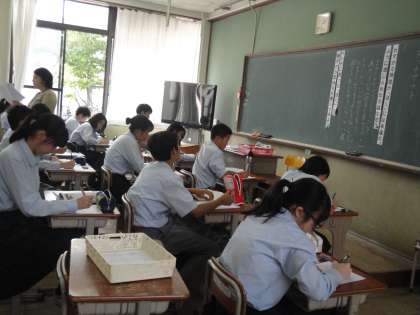 2年生は,「タッチアウト」という題材を使って,人は弱さとそれを克服しようとする誠実さについて考えました。