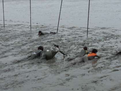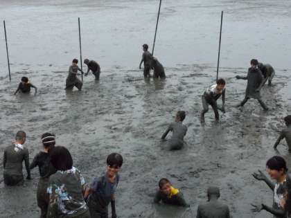 クラス写真の撮影が終わったら,しばらくはフリータイムで泥遊び。