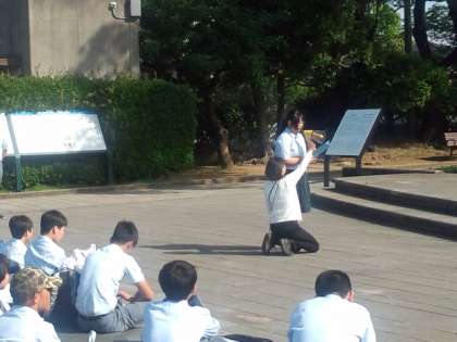 予定通りホテルを出発したバスは,8時過ぎに平和公園に到着しました。