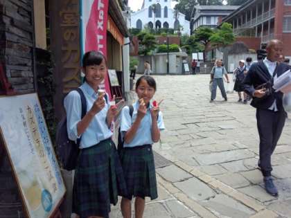 時間が限られているので心配ですが,どの班も観光・散策と食事、みやげとすべてに満足して集合場所に戻って来れるように願っています。