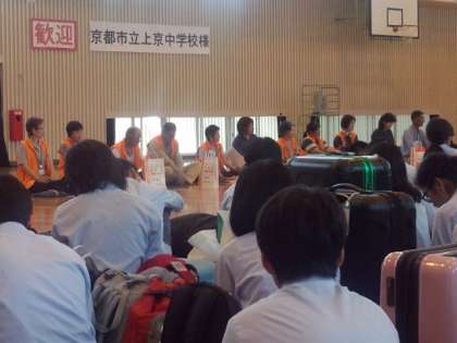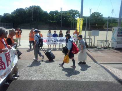地元の30を超える民家の方から「歓迎・京都市立上京中学校様」「歓迎・ようこそ南島原へ」と温かく出迎えていただき、生徒たちは緊張しながらも、楽しみにしている様子だったそうです。