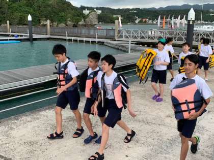 マリン体験が終わり,ホテルへ向けて「もとぶ元気村」を後にしました。