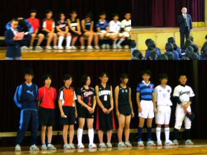 いよいよ明日(4月29日)、春季総合体育大会の開会式を迎えます。上京中学校運動部の各キャプテンが全校生徒の前で、大会に向けての抱負を述べました。各部の力強い決意に、好結果が期待されます。ぜひ、応援をお願いします。