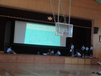 19日(木),1・2年生は,体育館を使って舞台発表の練習を行いました。