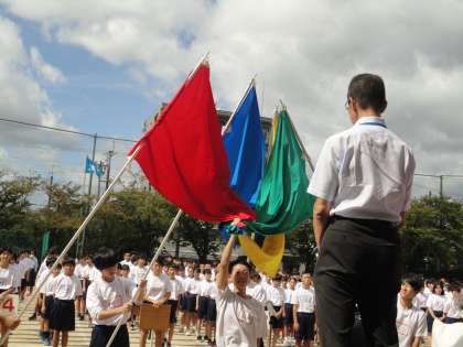 生徒会旗や聖火の入場,生徒代表宣誓など,初めてのことで戸惑う場面もありましたが,当日はビシッと決めてほしいと思います。
