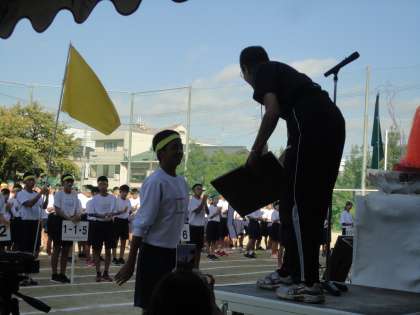 優勝盾が黄団団長から返還された後,校長先生からの激励の挨拶がありました。