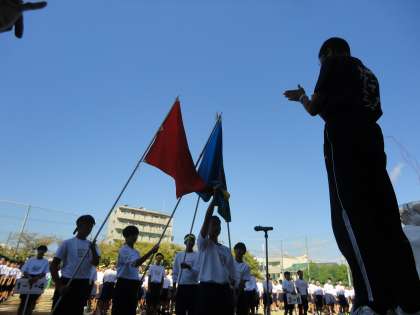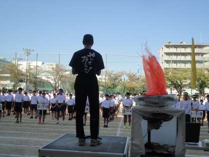 団長が持つ団旗を束ねてもった体育健康委員長が,堂々とした宣誓を行い,会場は大きな拍手に包まれました。