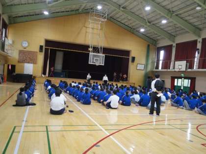 16日(金),3年生は19日に出発する広島方面への修学旅行にむけて,事前の集会を行いました。