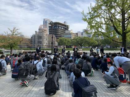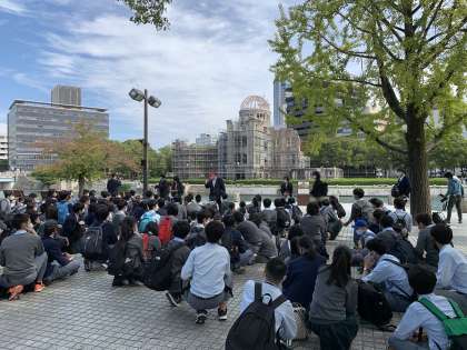 学年を2つに分けて,セレモニー,写真撮影,昼食,資料館見学,公園散策についての時間帯をずらしながら行動することになっています。