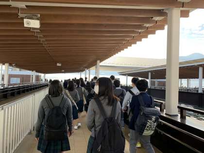 ホテルを出て,バスで宮島口まで移動し,フェリーで宮島に向かいます。