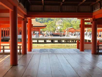 厳島神社では,おみくじを引いたり班ごとに写真を撮ったりしています。