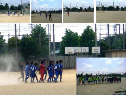 7月16日(土)、夏季大会1回戦が洛南中学校グラウンドで行われました。対戦相手は、旭丘中学校。炎天下の午前11時40分過ぎから試合開始。前半0対1でしたが、後半チャンスをものして、1対1の同点となりました。PK戦になり、キーパーN君の好守が光り、4対3で勝利しました。