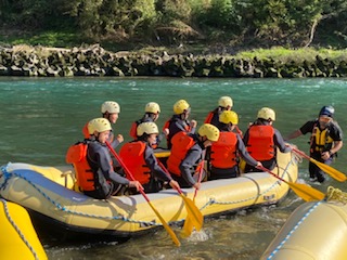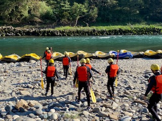 ついにラフティングが始まりました! みんなで協力して,清流下りです!とにかく水,景色がきれい!