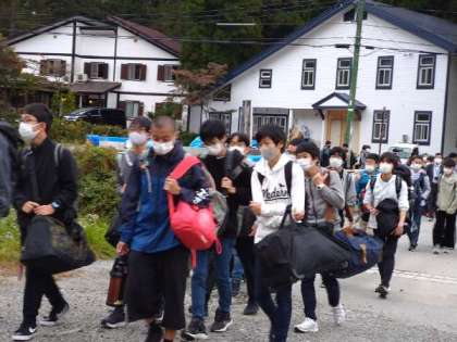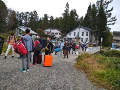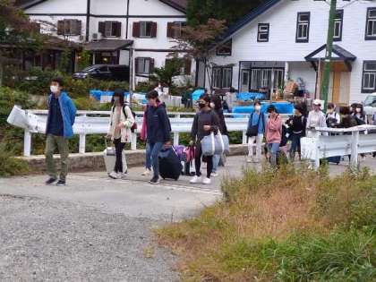 朝食からペンション出発までが短い時間でしたが、予定どおり集合できました。信州の自然ともお別れですね。