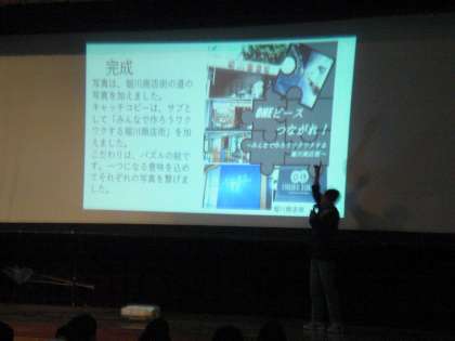 1年生から堀川商店街について探求活動を行ってきた流れで,今回の発表は,堀川商店街のポスター作りの成果の発表でした。