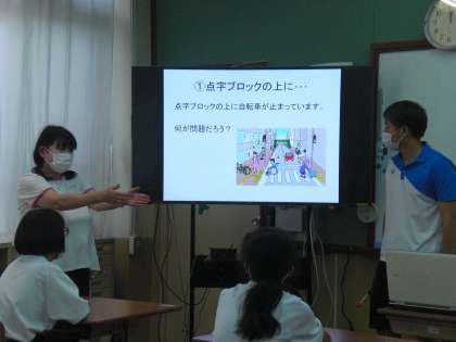 今回の授業を通して、身の回りにはたくさんの「バリアフリー」を配慮されたものがあることに気づくことができました。そして、それがなぜそうなっているかを考えることもできました。これからの生活の中でも、今日学習した「バリアフリー」を思い出して、自分に生かせるといいですね。