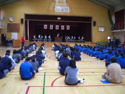 また、より快適な学校生活にするためには、生徒会役員だけではなかなか実現しません。新しい生徒会本部のメンバーと一緒に、生徒会員(生徒全員のこと)全員が、同じ目標のもと、様々な場面で力を出し合い、協力し合い、認め合い、毎日が快適で楽しい学校生活が送れるように努力してほしいと思います。