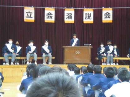 5、6時間目に生徒会役員選挙・立会演説会がありました。