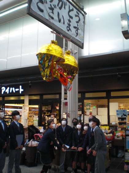 18日(金)、本日午後に桝形商店街にて、これまで総合的な学習の時間や美術の時間などで取り組んできたことを紹介するセレモニーが行われました。