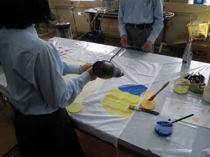 また、生徒会中央委員も生徒会旗の制作をしています。生徒会のシンボルとなる旗ですので、制作している役員のみんなもいろいろと相談しながら作業を進めていました。こちらも完成が楽しみですね。