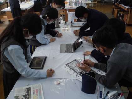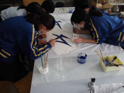 自分のクラスやクラス目標をイメージした絵柄をクラスで決め、各クラスの制作係が協力しながら作業を進めています。コミュニケーションを取りながら、アイデアを出し合いながら、和気あいあいと作業に取り組んでいます。