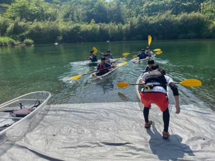 なんときれいに澄んだ水面なんでしょう。透明なカヤックでその美しさも倍増です。みんな楽しんでいます。