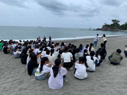 集合写真を撮影した後、解団式を行いました。校長先生のお話では、3日間で学年が団結し、最高の思い出づくりができたことを、今後の学校生活でいかしてほしいことや、たくさんのありがとうがあったこと、時間やルールを守って行動できたことを忘れずに、といった言葉がありました。