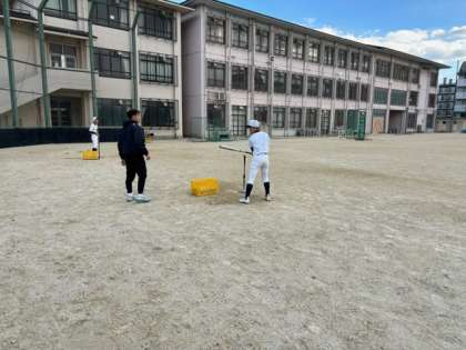 2023年最後の練習の日の様子です。冬休みは、練習に本校の卒業生で、同志社大学の硬式野球部の方が練習に来てくださり、キャッチボールやトスバッティングの重要性と、バッティングにおいて、力をどのタイミングで入れるのが重要かというお話等、野球を高いレベルでされてきた経験をもとにご指導いただきました。