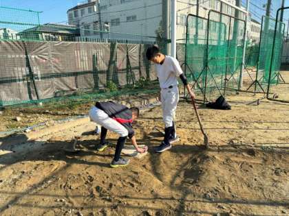 また、この長期休みの間にマウンドの高さの調整やブルペンの増設を行いました。環境を自分たちで整えることで、普段使わせていただく会場校や球場がいかに整備されているかを気づける機会にもなりました。部員たちも人数が少ない中、丁寧に作ってくれました。この環境が維持できるように大切に思って活動していきます。