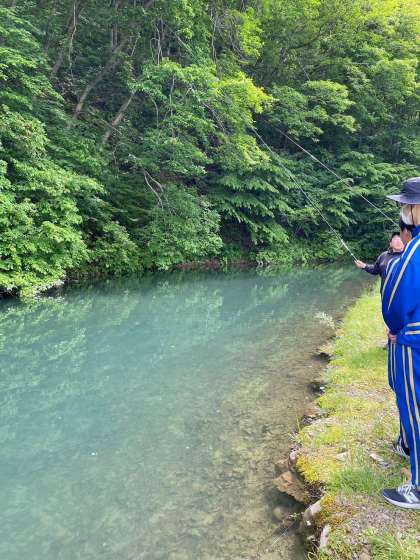 選択体験の様子です。残念ながら先日からの雨量で、川の増水が起こり、キャニオニングは危険と判断されてできませんでした。その代わりにいかだづくりを体験します。保護者の皆様におかれましては、安全を最優先し、自然相手のことなので、ご了承下さい。