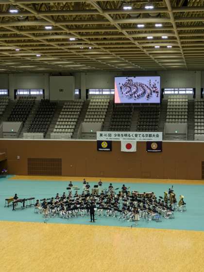 吹奏楽部は島津アリーナ京都で行われました「第46回少年を明るく育てる京都大会」に出演しました。この大会は青少年の非行防止と健全育成を広くアピールするために開催されているものです。