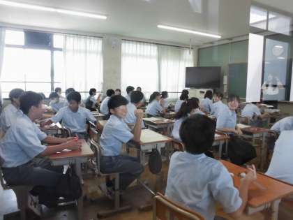 リモートで始業式・制服の着こなしセミナーを行った後、各クラスで学活・夏休み明け課題テストなどを行いました。