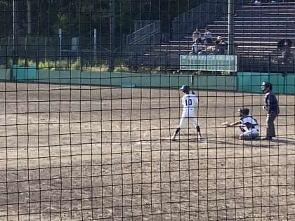 上京中学校は後攻でした。一回表は三者凡退、裏先頭バッターツーベースヒット、打線で繋ぎ1点先取しいいスタートをきりました。2回表ノーアウト満塁から2点取り返されますが、後には続かせず守り切りました。2回裏には、1点取り返し同点とします。4回以降点を取られるものの、こちらも点を取り返し、最後まで粘り強く戦いました。しかし、残念ながら逆転できず敗退しました。選手は最後まであきらめずに頑張りました。