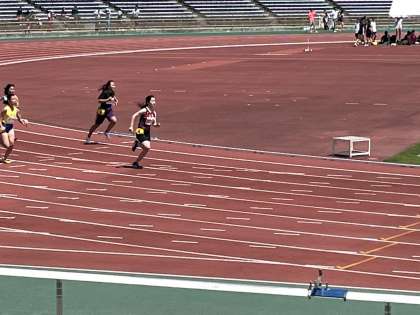 自分の競技になると、心を整え、スタート地点に向かう姿はとてもかっこよく、ベンチでは上京チームで応援しました。陸上競技部は春季大会をたけびしスタジアム京都で行いました。