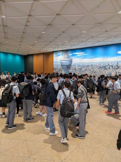 月島もんじゃストリートで夕食をすませた後は、東京スカイツリーへ向かいました。施設内の見学と夜景を楽しみます。