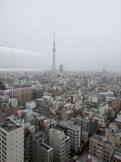 写真は朝のホテルからの景色や朝食会場です。この後、ホテル内で朝食を取り、東京都内判別自主研修に出発します。